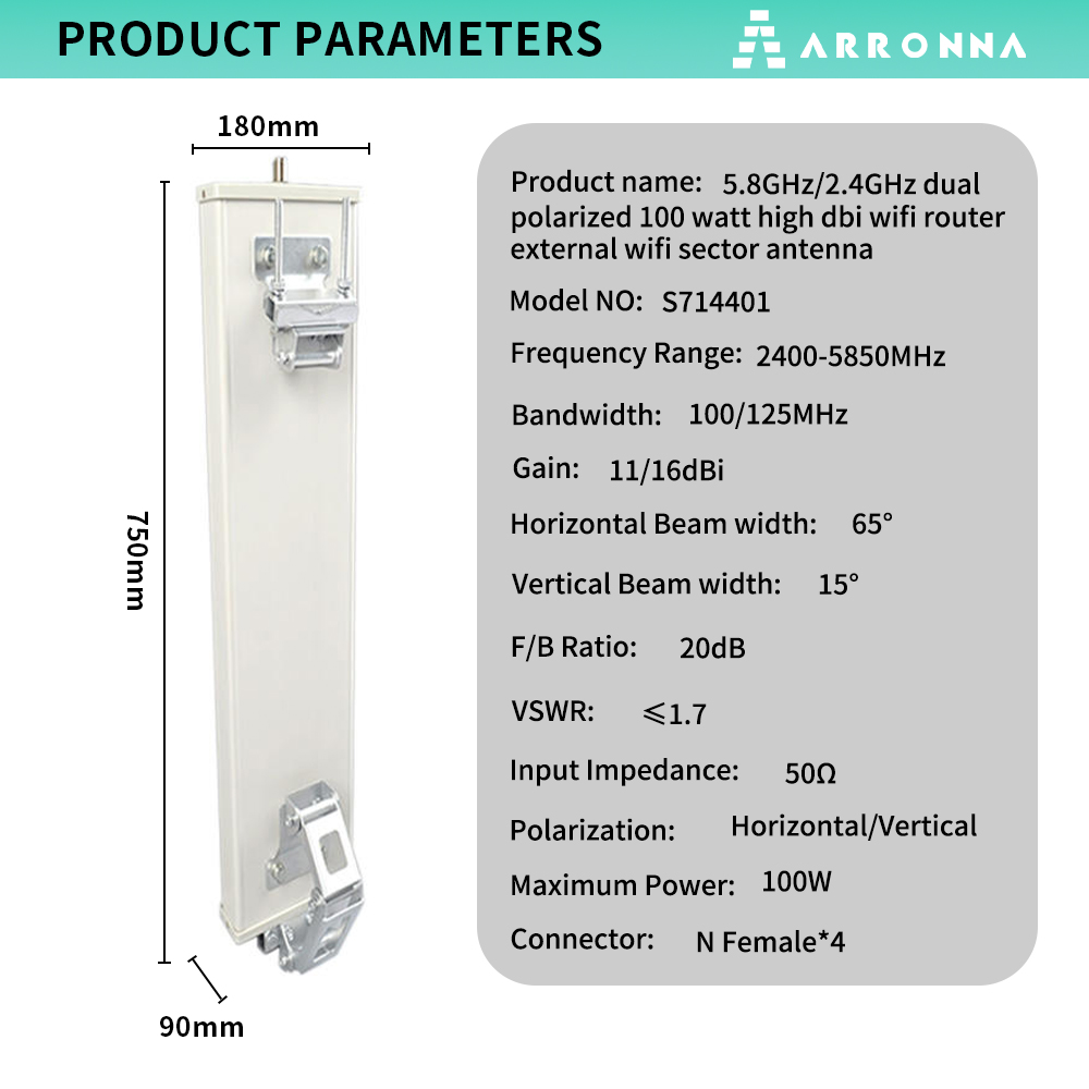 5.8GHz/2.4GHz dual polarized 100 watt high dbi wifi router external wifi sector antenna |
